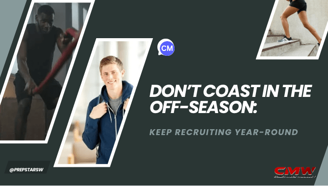 Taking time off can put you behind in both your development and your recruiting. It’s easy to fall into a funk where one day off turns into two, then four, then a week or even a month. College coaches recruit athletes year-round, so you should stay focused on your recruiting year-round as well. The off-season is the perfect time to train, improve your speed and strength, update your highlight video, attend camps, communicate with coaches, and get ahead academically.