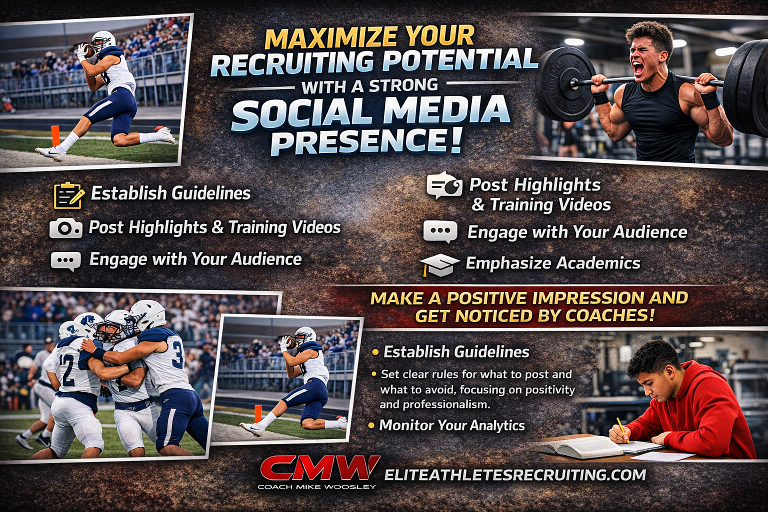 Coaches often review social media profiles to better understand the athletes they are considering. They want to know if you are coachable, disciplined, and someone who will represent their program the right way. Your posts should reinforce what they see on film—your work ethic, leadership, consistency, and character. The goal is simple: make it easy for a coach to say yes to you.