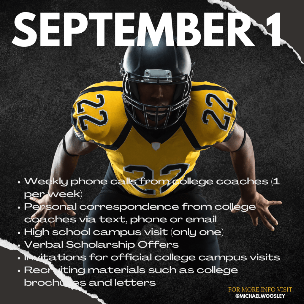 In addition to communication, September 1 also marks the point when athletes may begin receiving recruiting materials and more personalized information from programs. Coaches can start scheduling unofficial and official visits, although the actual timing for when official visits can take place may vary by sport. Prospects may also begin discussing scholarships, roster opportunities, and other program details directly with coaches.